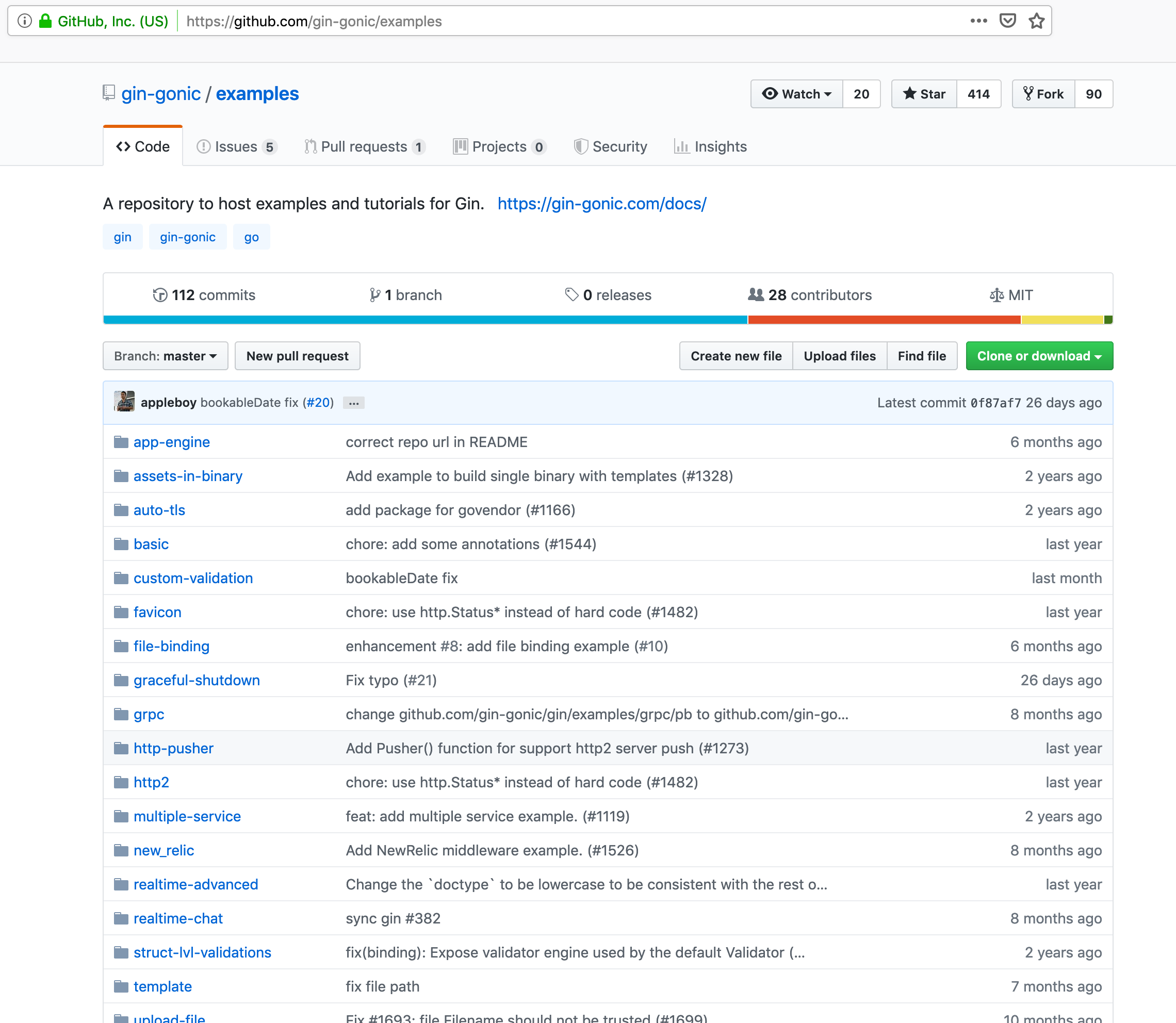 Following the excellent tutorials of the “Gin” Go library, let’s take a look at their examples: