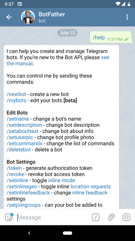 I spent a considerable amount of time figuring out how to make a functional telegram bot. I mean sure, the official introduction is good, but theres a lot of stuff about what bots are, and a few scattered instructions about the API, but not enough of structure for a beginner to get up and running quickly.