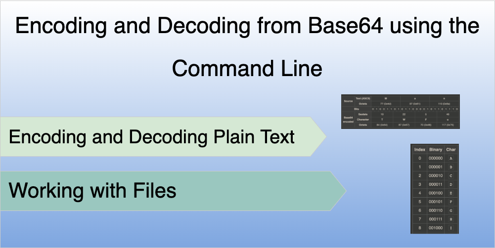 In this post we wil learn how to encode and decode from the base64 format using the base64 command line tool, typically pre-installed on most Unix base operating systems, like MacOS or Linux.