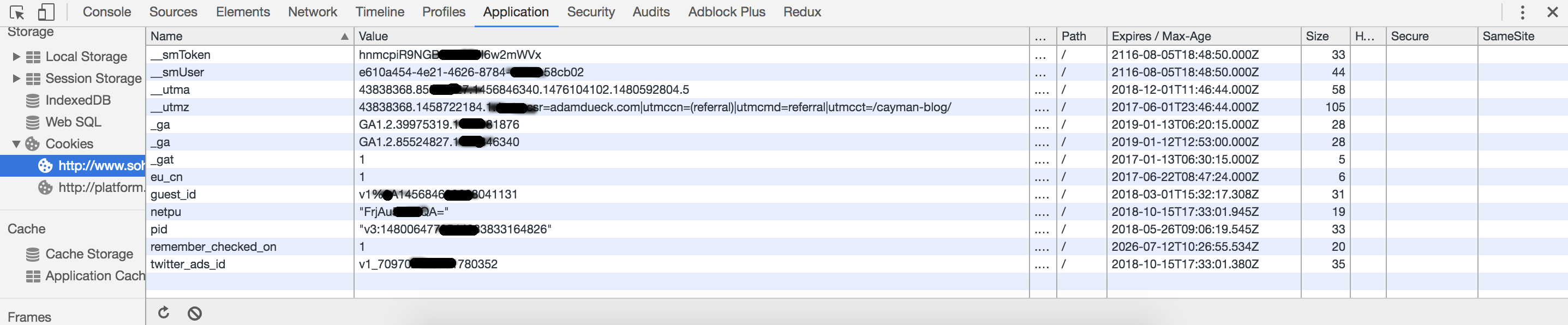 If you want to see the cookies currently stored for the current website you are visiting (like this one) right click anywhere on the page and click on “inspect” to open the developer tools (if you are on chrome). Next, go to the application tab and click on the cookies section under that.