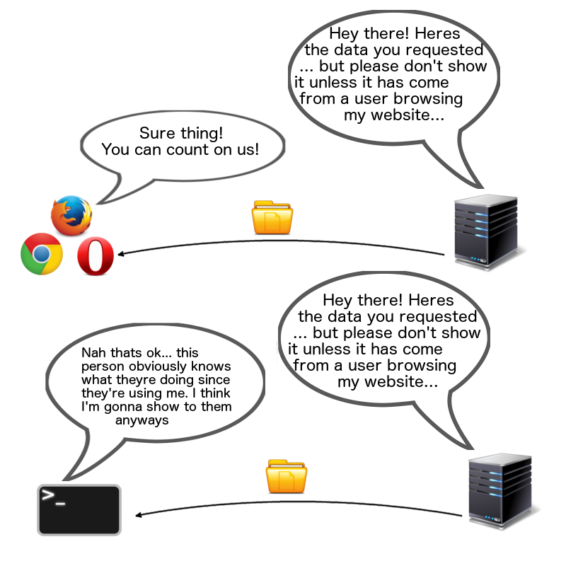 But why? It might seem harmless to allow requests to another origin. After all, that url would receive millions of other requests from unknown sources anyways. The answer lies in the way browsers work.